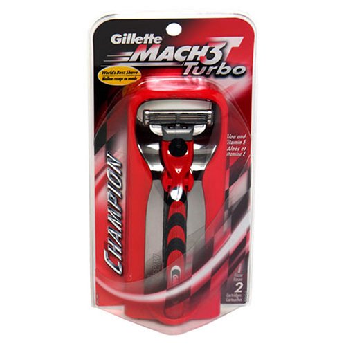 Contains 1 Razor, 2 Cartridges. Aloe and Vitamin E. World's best shave. The next generation triple-blade razor for the closest shave with less irritation - even when shaving against the grain. 1. 3 Blades with advanced Anti-Friction coating, so Mach3 Turbo removes more of each hair with less irritation. 2. Soft, protective Microfins, gently smooth down the skin so Mach3 Turbo can shave evenly and effortlessly. 3. Enhanced Indicator lubricating strip, keeps your Mach3 Turbo gliding, shave after shave. Mach3 Turbo makes the closest shave even more comfortable. All Mach3 cartridges fit all Mach3 razors.